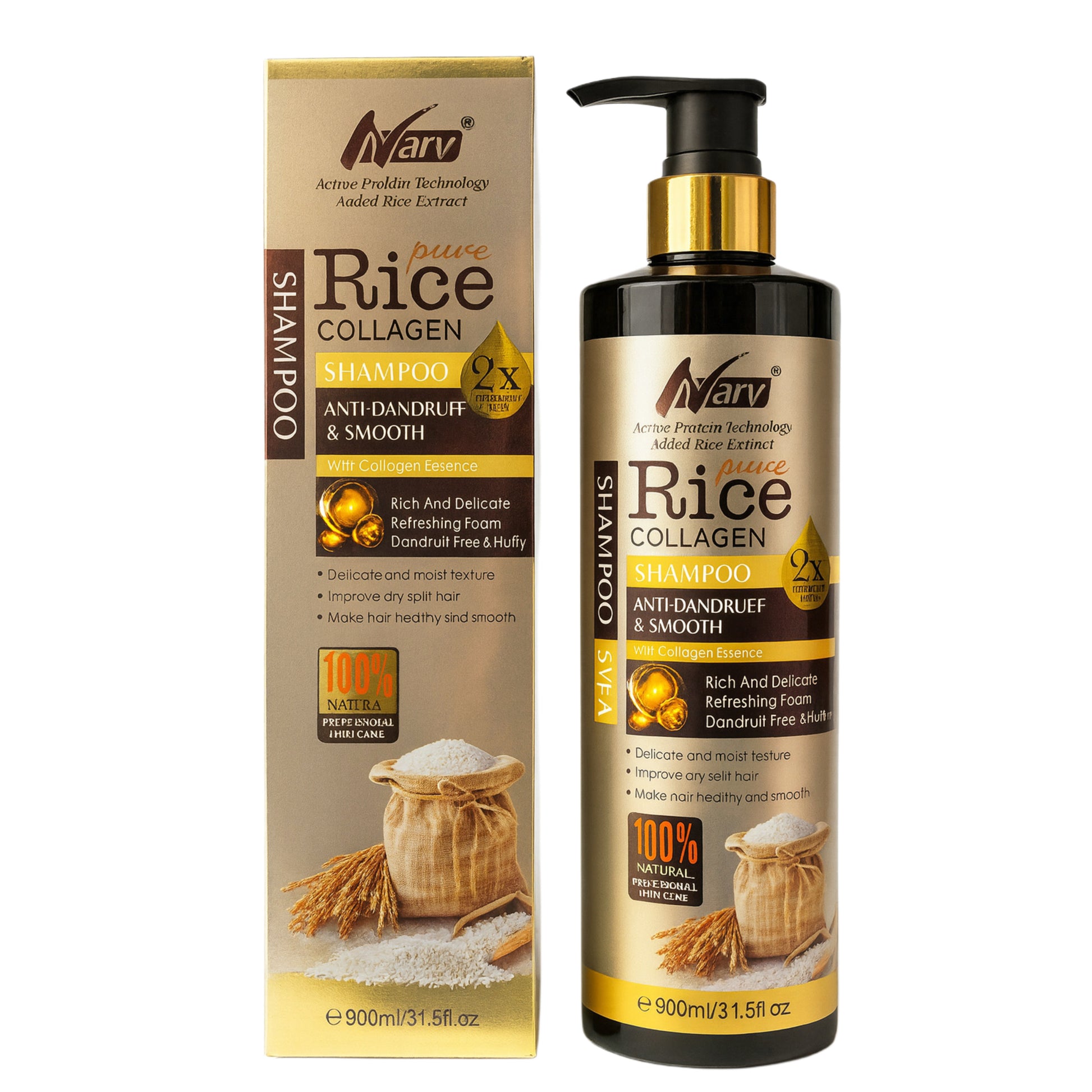 Narv Rice Collagen Shampoo gently cleanses the scalp and hair, providing intense hydration and effective protection against dandruff. Its formula enriched with natural rice extract and collagen strengthens the hair, restoring its elasticity and natural shine. Collagen helps regenerate and nourish the hair, preventing dryness and damage, while rice proteins provide a smoothing and velvety effect. Its creamy texture produces a rich foam that leaves hair clean, soft and revitalized. Used regularly, the shampoo helps maintain a healthy scalp, eliminates dandruff and gives hair a smooth, silky and vibrant appearance.