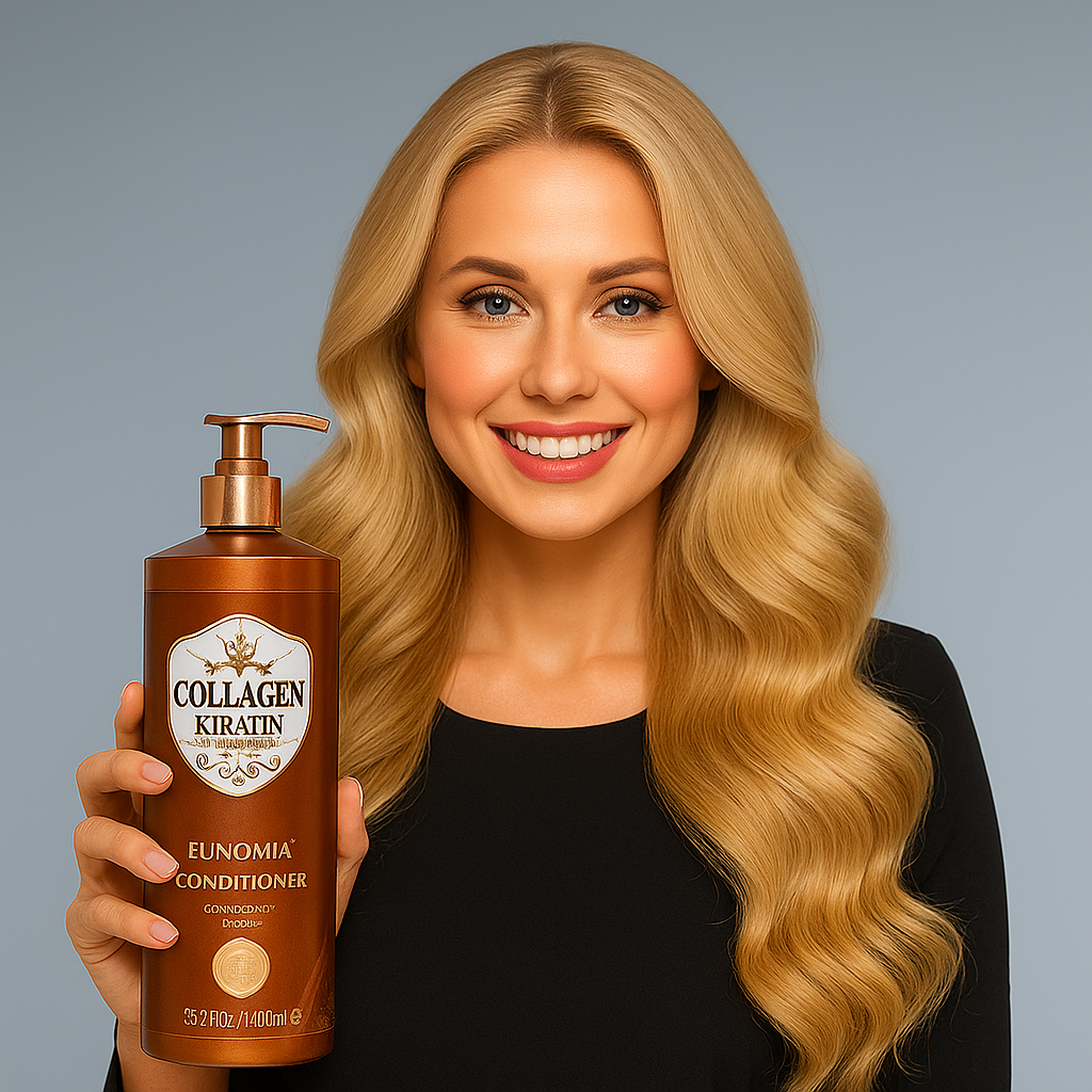 Descoperă balsamul EUNOMIA îmbogățit cu colagen și keratină – soluția ideală pentru un păr strălucitor, neted și ușor de pieptănat. Formula sa specială oferă hidratare intensă, repară firele deteriorate, conferă elasticitate și strălucire natura.