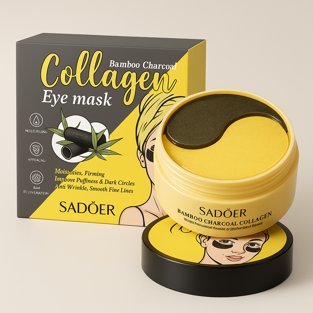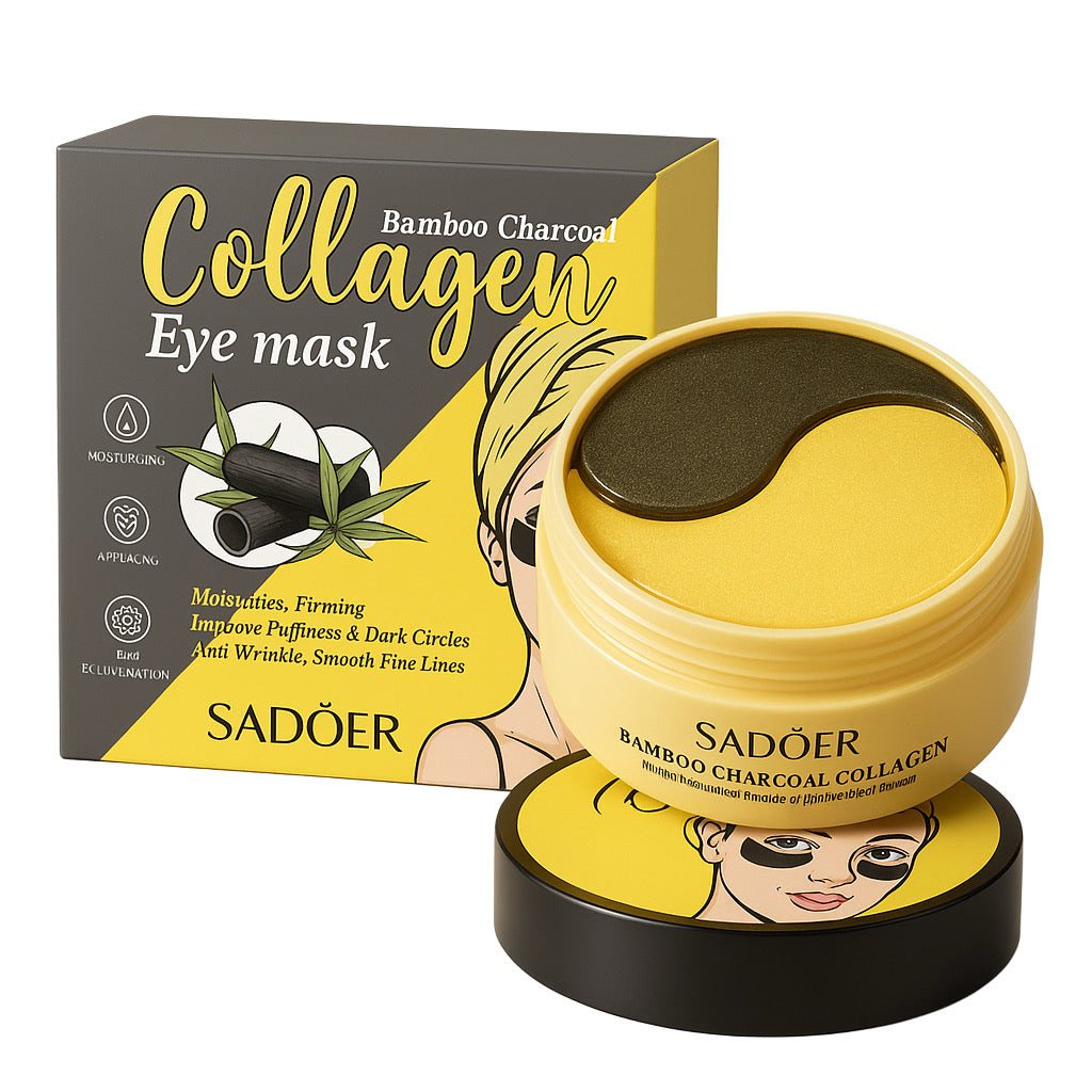 Set 60 Plasturi Hidrogel cu COLAGEN si Carbuni de Bambus SADOER Premium pentru Ochi Hidrateaza si ferma zona ochilor efect Anti-rid si inpotriva Cearcanele negre SD95282